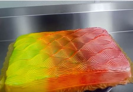تداول نشطاء على مواقع التواصل الاجتماعي فيديو لكعكة سحرية تتغير ألوانها باستمرار بألوان قوس قزح وتدرجات لونية مختلفة عند النظر إليها من زوايا مختلفة.