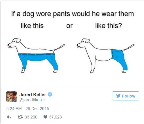من جهته، كان صاحب الصورة، "نوربيرت"، صرح في تغريدة له أن هذه الفكرة راودته بعد أن رأى كلبا جديدا مرتديا سروالا.