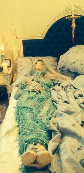 كما نشر مجموعة من الصور التي تظهر والدته في النعش وأخرى خلال إلقاء التحية الأخيرة عليها في المنزل .