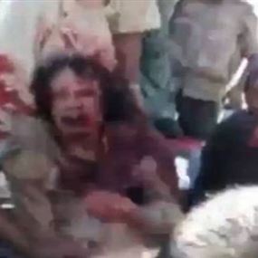 ويظهر في مقطع الفيديو القذافي "مضرجا" بدمائه، ومسلحو المعارضة الليبية يحيطون به من كل جانب وهم يصوبون أسلحتهم باتجاهه، وهو يتوسل إليهم ألا يقتلوه.