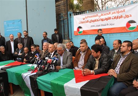 عقدت خلية إدارة الأزمة مع الأونروا مؤتمرا صحافيا، اليوم، أمام مركز "الأونروا" الرئيسي في بيروت، في إطار سلسلة احتجاجات تعم المخيمات والمجتمع الفلسطيني في لبنان بعد قرار "الأونروا" تقليص خدماتها الصحية للاجئين الفلسطينيين، في حضور عدد من مسؤولي الفصائل الفلسطينية، وممثلي اللجان الشعبية والمجتمع المحلي.