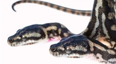 كشف جون ماكنمارا أحد مربي الثعابين عن ولادة نادرة لثعبان برأسين بين عشر بيضات لأم تبلغ من العمر 5 سنوات.