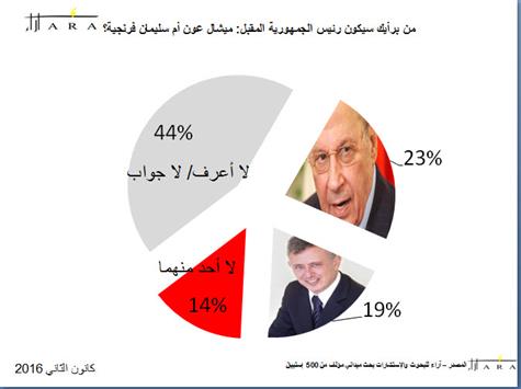 وقد أجرت «شركة آراء» في كانون الثاني 2016 استطلاعاً للرأي حول الموضوع الرئاسي شمل عينة من 500 شخص مماثلة للتوزيع السكاني في لبنان، قام بتحليل نتائجه ماهر أبو شقرا، وأشرف على التحليل مدير الشركة طارق عمار.