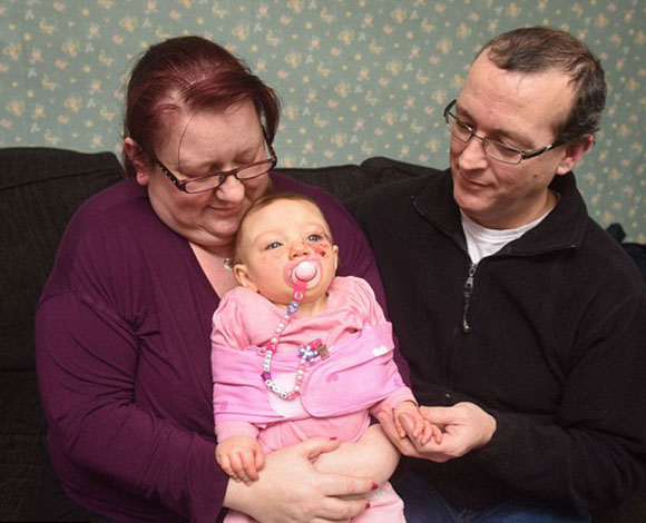 وولدت تلك الطفلة وتدعى ألانا لونغ، من أرينغتون في لانكاشاير، وتبلغ من العمر الآن 11 شهرا، بهذا الخلل الذي كاد أن يودي بحياتها. وهذا الخلل من العيوب الخلقية النادرة التي تتسبب في نمو جزء من الدماغ عبر ثقب يوجد في مؤخرة الجمجمة.