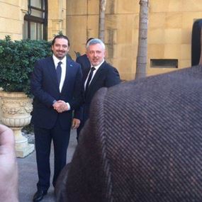 وقال ردا على سؤال: "ربما خلال اليومين المقبلين قد ازور بيت الوسط"، ليتبين لاحقاً انه وصل الى بيت الوسط للقاء الرئيس سعد الحريري وقد استقبله الرئيس الحريري عند المدخل الرئيسي وأقام على شرفه مأدبة غداء حضرها وزير الداخلية والبلديات نهاد المشنوق، الوزير السابق يوسف سعادة، النائب السابق غطاس خوري والسيد نادر الحريري.