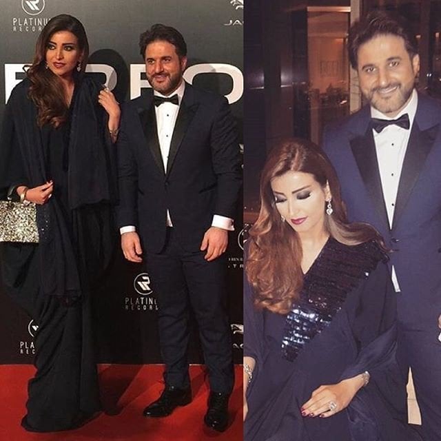 وحضر ملحم زين حفل بلاتينوم ريكوردز برفقة زوجته التي تألقت بالاسود وخطفت الانظار على السجادة الحمراء.