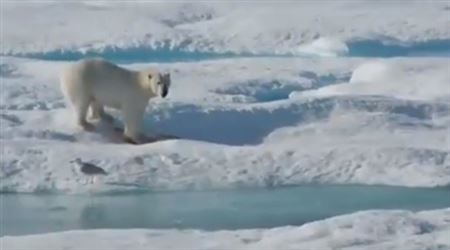 في مشهد صادم ونادر توثيقه من بني البشر، قام دب قطبي بمطاردة ديسم (صغير الدب)، حتى نال منه والتهمه على مرأى من عين أمه التي كانت تحاول إنقاذه لكن دون جدوى.