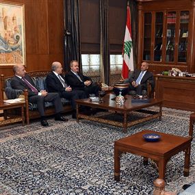 التقى رئيس مجلس النواب نبيه بري في مكتبه في عين التينة، بعد ظهر اليوم، الوفد النيابي الذي كلفه بزيارة واشنطن في اطار شرح الموقف اللبناني من التدابير والاجراءات المالية الاميركية وتداعياتها على لبنان.