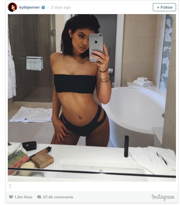 وسبقت كايلي جينر نشرها لصورتها العارية المشابهة لصورة أختها كيم كارداشيان، بتغريدة عبر حسابها على Twitter، والتي وصفت كيم فيها بـ "الأسطورة"، دفاعا عنها من المهاجمين والمنتقدين.