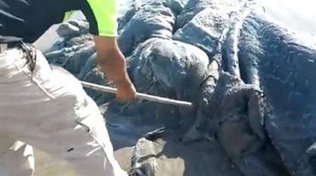 عثر على كائن بحري مهول طوله 4 أمتار عند سواحل مدينة أكابولكو المكسيكية، ولم يحدد العلماء والخبراء بعد نوع هذا الحيوان.