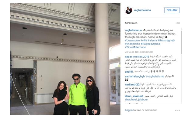 وعبر حسابه الرسمي على موقع التواصل الاجتماعي "انستجرام" شارك راغب جمهوره بنشر أول صورة من داخل فيلته الجديدة وكان بصحبته زوجته جيهان علامة و مصممة الديكور ميساء كلش المسئولة عن ديكورات الفيلا.