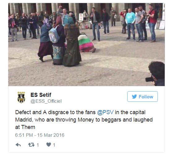 في مشهد هو الأبشع ربما، انتشر فيديو على مواقع التواصل الاجتماعي، يظهر عدداً من جمهور فريق "PSV أيندهوفن" الهولندي، قبل مباراة فريقه مع "أتلتيكو مدريد" الإسباني، وهم جالسون في مقهى في مدرير يحتسون القهوة والمشروبات، ويرمون قطع النقود المعدنية على الأرض بطريقة مهينة، لتركض نساء سوريات ويلتقطنها.