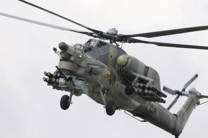 وكانت القوات الجوية الروسية اتي تدعم القوات السورية أثناء عملياتها على الإرهابيين تستخدم مروحيات من طراز "مي-24" و"مي-35" من قبل. وشوهدت بمقاطع الفيديو التي تم التقاطها في مطار قاعدة حميميم بسوريا في 16 آذار وبثها تلفزيون "زفيزدا"، مروحية من طراز "كا-52" ومروحية من طراز "مي-28إن".
