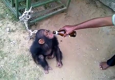 وفقا لما نشرته صحيفة "ديلى ميل" البريطانية، أخذ القرد يضرب الأرض بجنون بعد انتشال الزجاجة منه، ثمتناول زجاجتين كاملتين بعد حصوله عليهما من صاحبه.