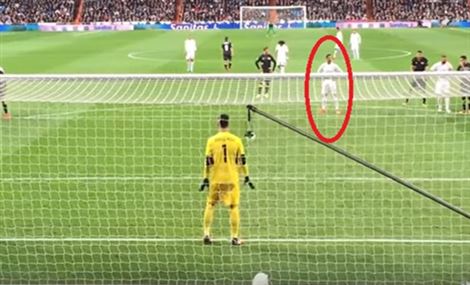 أهدر البرتغالي كريستيانو رونالدو مهاجم ريال مدريد ركلة جزاء في مواجهة إشبيلية التي جرت بينهما على ملعب سانتياجو برنابيو لحساب الجولة 30 من بطولة الدوري الإسباني، لكن تسديدته التي علت المرمى أصابت هاتف أحد المشجعين الذي كان يقوم بتصوير ركلة الجزاء.