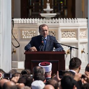 جاء ذلك في كلمة له خلال مراسم افتتاح المجمع الإسلامي الأميركي، في ولاية ميريلاند بالولايات المتحدة، حيث أعرب أردوغان عن تمنياته بأن يعود المجمع بالخير على جميع المسلمين.