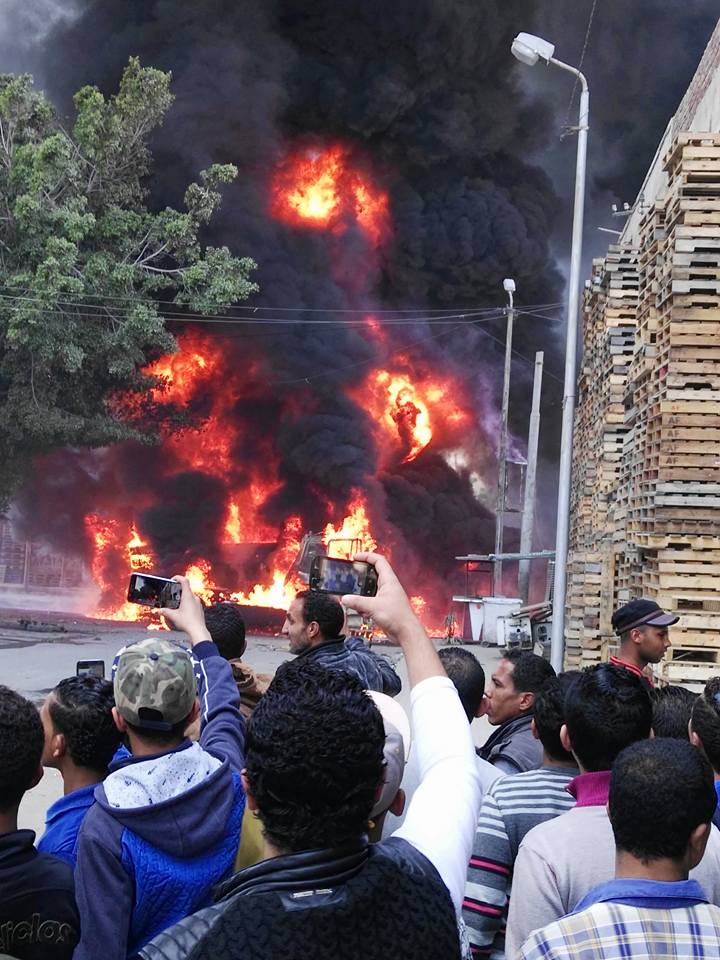 ووقع الحادث بعد انقلاب الشاحنة في شارع الأخشيم بمينا البصل قرب شركة كهرباء الورديان، فيما تجمهر عدد من الأهالي في محاولة للسيطرة على الحريق لحين وصول قوات الدفاع المدني.