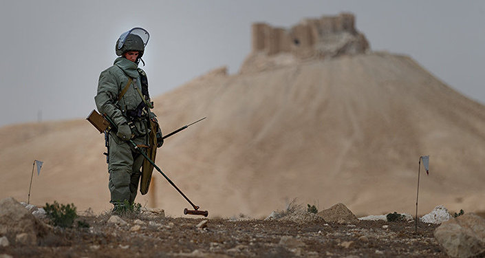 وأرسل الجيش الروسي إلى مدينة تدمر السورية أحدث المعدات لمساعدة القوات الروسية في إزالة الألغام التي زرعها تنظيم "داعش" الإرهابي في المدينة خلال احتلالها، كما ستشارك كلاب مدربة في إزالة الألغام إلى جانب المعدات.
