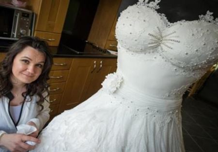 توصف الفساتين عادة بأنها جميلة، لكن فستان الزفاف هذا وإن كان جميلاً فهو لذيذ أيضاً لأنه مصنوع كلياً من الكيك، وإذا كانت العروس جائعة يمكنها أن تأخذ منه قضمة.