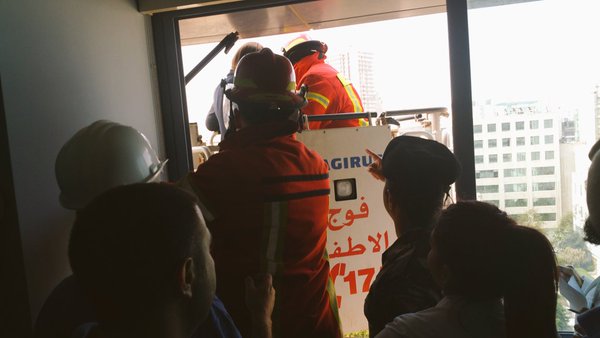 صدر عن دائرة العلاقات العامة في بلدية بيروت، البيان الآتي: ينفذ فوج اطفاء بيروت في هذه الأثناء مناورة حيه لإطفاء حريق مفترض وعملية إخلاء في مستشفى القديس جاورجيوس الجامعي ، من خلال السلالم الداخلية بواسطة النقالات وعبر نوافذ الغرف من الطابق الثامن وبواسطة السلالم الآلية المتحركة التابعة لفوج إطفاء بيروت، وذلك بمشاركة كل الأقسام المعنية في المستشفى إضافة إلى الأطباء".