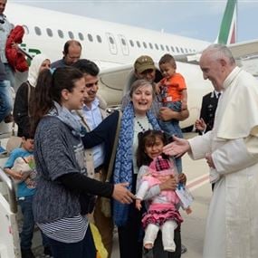 نقل البابا فرنسيس ثلاث عائلات للاجئين سوريين مسلمين على متن الطائرة التي تقله أثناء عودته إلى الفاتيكان بعد زيارته لجزيرة ليسبوس اليونانية التي تعد الخط الأمامي لأزمة المهاجرين إلى أوروبا والتي تسببت في مقتل المئات خلال العام الماضي.