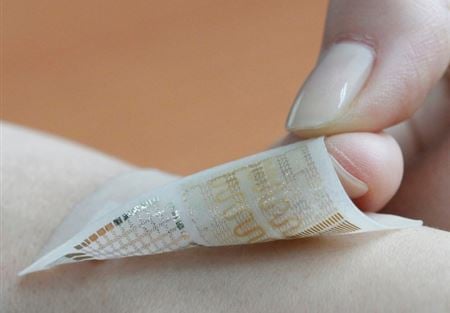 ويعكف فريق بحثي في جامعة طوكيو على تطوير طرق لعرض أرقام وحروف على طبقة الجلد الالكتروني لمساعدة الأطباء على معرفة البيانات الطبية للفرد.
