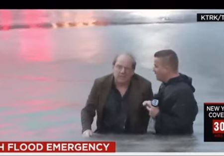 وكان المراسل ستيف كامبيون يغطي الفيضانات في هيوستن، عندما شاهد رجلاً مسناً يقود سيارته باتجاه منطقة مياه عميقة بالقرب من نفق، وسارع إلى الصراخ طالباً منه إيقاف السيارة والترجل منها، بحسب صحيفة دايلي ميل البريطانية.
