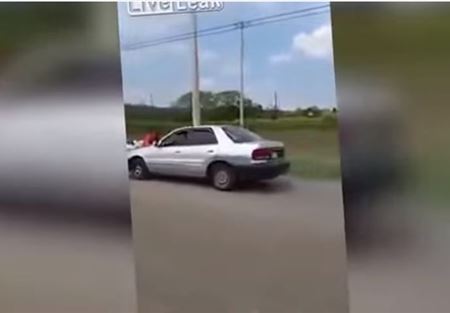 ويبدأ الفيديو الذي تناقلته مواقع التواصل الاجتماعي برجلين يقفان على جانب الطريق، قبل أن تظهر سيارة منطلقة من الناحية اليسرى، فوجىء سائقها بسيارة أخرى من الاتجاه المعاكس عليها امرأة مقيدة فوق غطاء المحرك، مما أدى إلى انقلاب السيارة الأولى.