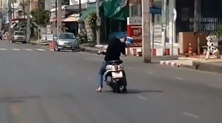 تناقلت مواقع التواصل الاجتماعي في تايلند مقطع فيديو يظهر فيه رجل يقود دراجته النارية وهو يغط في النوم قبل أن يصطدم بأحد المارة ويسقط على الأرض.