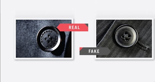 في البضائع الأصلية تكون الأزرار محاكة بطريقة محترفة، والدرزات متساوية. في المقابل، تضع غالبية البضائع الأصلية اللوغو الخاص بها على الأزار بينما لا تقوم المزيفة بذلك لأنها تكلفها الجهد والمال.