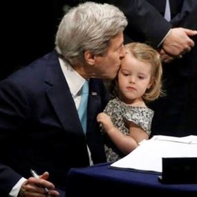 فاجأ وزير الخارجية الأميركي جون كيري الحضور في مبنى الأمم المتحدة، باصطحابه حفيدته، أثناء التوقيع على وثيقة المناخ الجمعة 22 نيسان.