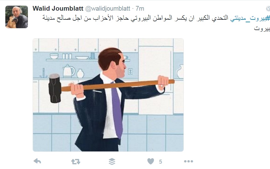 وكان لافتاً إستخدام "جنبلاط" لوسم "#بيروت_مدينتي" في إشارة منه إلى اللائحة التي أعلنت في العاصمة ومشكلة من قبل شباب وشخصيات غير حزبية ومن الحراك المدني.