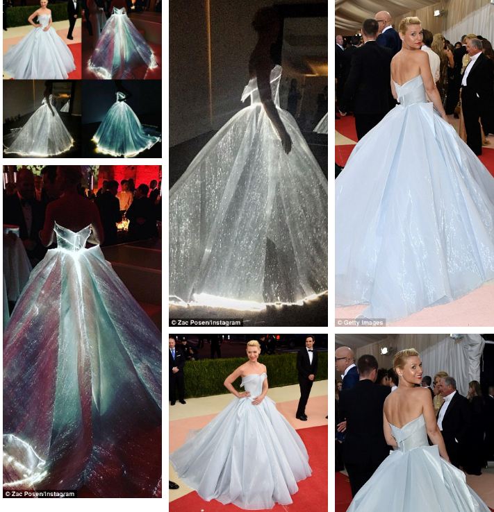 وكانت النجمة Dones قد اختارت ثوباً ابيض اللون حمل توقيع دار ازياء Zac Posen وسرعان ما اضاء الحفل في الظلام. واتت اطلالتها من وحي عنوان الحفل وهو ” الانسان والازياء في عصر التكنولوجيا”. وقد حضر الحفل حشد كبير من اهم المشاهير وقد اختارت النجمات ازياءً تتناسب مع موضوع هذا الحدث العالميّ لهذا العام.