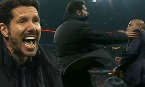 فقد المدرب الأرجنتيني دييغو سيميوني، المدير الفني لفريق أتلتيكو مدريد الإسباني اعصابه خلال اللقاء الذي جمع فريقه مع بايرن ميونيخ الألماني في إياب نصف نهائي دوري أبطال أوروبا، وذلك باعتدائه على مراقب المباراة. اذ وجه دييغو سيميوني ضربة إلى مراقب المباراة في كتفه، في الوقت الذي كان فيه بصدد رفع لوحة إجراء التبديلات.