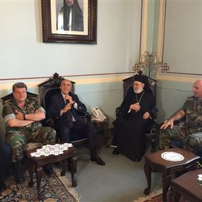 استقبل متروبوليت بيروت وتوابعها للروم الارثوذكس المطران الياس عوده نائب رئيس مجلس الوزراء وزير الدفاع سمير مقبل في المطرانية في الاشرفية برفقة ضباط من المؤسسة العسكرية.