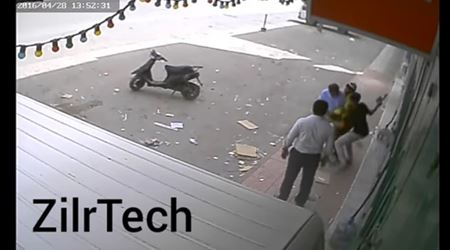 ويظهر المقطع رجلين كانا يقفان على طرف الشارع في منطقة خالية، في حين ترجل شخصان آخران من على دراجة كانا يستقلانها، أحدهما يحمل "ساطورا"، وتوجها بسرعة نحو الرجلين وهدداهما بالساطور، ونشلا محفظتيهما.