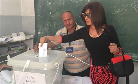 نشرت شمس الاغنية اللبنانية "نجوى كرم"، صورة لها عبر حسابها على "تويتر"، وهي تنتخب في بلدتها زحلة.