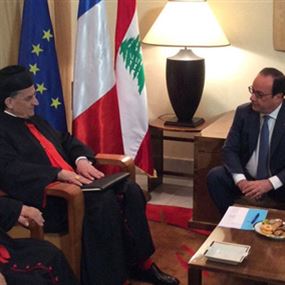 التقى البطريرك الماروني الكاردينال مار بشاره بطرس الراعي العاشرة والنصف من قبل ظهر اليوم الرئيس الفرنسي فرنسوا هولاند في قصر الاليزيه حيث تابعا معا المواضيع التي كانت عرضت في لقائهما الاخير في بيروت، وابرزها الفراغ في سدة الرئاسة منذ سنتين ما يقتضي اساسا البحث بعمق في اسبابه، وثانيا الأزمة الاقتصادية والاجتماعية الخانقة وثالثا تداعيات الحروب والنزاعات على لبنان سياسيا واقتصاديا، ورابعا عبء النزوح على النازحين انفسهم وعلى اللبنانيين ودور فرنسا في مساعدة لبنان في هذا الاطار. كذلك طلب البطريرك الراعي من الرئيس الفرنسي مضاعفة الجهود على المستوى التربوي والاجتماعي في لبنان بالاضافة الى الملف السياسي والامني".