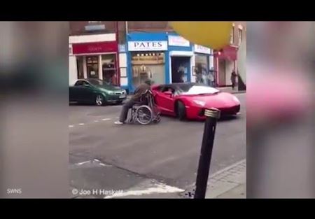 استفز رجل مقعد يجلس على كرسي متحرك سائق سيارة لامبورغيني متعمداً قطع الطريق أمامه، وتمكن أحد المارة في المكان من توثيق المشهد بالفيديو ونشره عبر مواقع التواصل الإجتماعي.