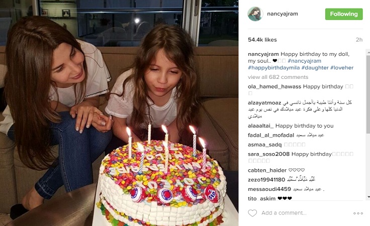 نشرت النجمة اللبنانية نانسي عجرم، عبر حسابها الخاص، على "إنستغرام"، صوراً من احتفالها هي وأسرتها بعيد ميلادها وعيد إبنتها ميلا مع قالب حلوى مميز.