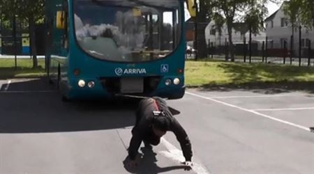 قام رجل في عقده السادس بجر حافلة من طابقين بخصلة من شعره.