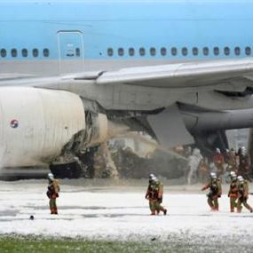 قامت شركة الخطوط الجوية الكورية بإجلاء 319 راكبا إضافة إلى أفراد الطاقم من طائرة تابعة لها كانت تستعد للاقلاع من مطار هانيدا الدولي بالعاصمة اليابانية بعد أن انبعث دخان من محركها الايسر. ودفع الحادث السلطات إلى إغلاق المطار الاكثر إزدحاما في اليابان مؤقتا.