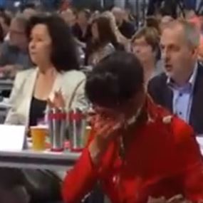 وأوقف رئيس الحزب كلمته واتجه مصور نحوها وطلب أحد مسؤولي الحزب من الصحفيين عدم التقاط صور للحادث.