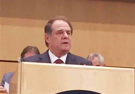 وقال قزي: "من هنا من هذا المنبر بالذات أوجه ندائي الى كل المنظمات، لا سيما الى منظمة العمل الدولية والمفوضية العليا لشؤون اللاجئين بأن ينتقلوا بمنطقهم وتفكيرهم وجدليتهم من مشروع تثبيت النازحين واللاجئين حيث هم، الى مشروع إعادة النازحين واللاجئين الى أوطانهم، لان اوطانهم أحق بهم من أوطان الاخرين. لا يجوز ان يبقى الشعب الفلسطيني مشردا، لان العالم عاجز عن فرض قيام دولة فلسطينية مستقلة، ولا يجوز أن يبقى الشعب السوري نازحا لان العالم لا يريد حلا للحرب في سوريا".