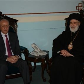 استقبل متروبوليت بيروت وتوابعها للروم الأرثوذوكس المطران الياس عوده وزير العدل المستقيل أشرف ريفي يرافقه القاضي محمد صعب، العميد روبير جبور ومستشاره الاعلامي أسعد بشارة.