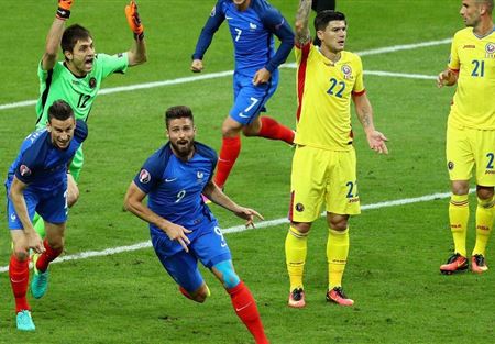 وسجل أوليفييه جيرو (57) وديميتري باييه (89) هدفي فرنسا، وبوغدان ستانسو (65 من ركلة جزاء) هدف رومانيا.