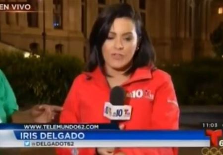 وتظهر المراسلة إيريس ديلغادو في بداية الفيديو وهي تتحدث إلى قناة "تيلي موندو" التلفزيونية الناطقة باللغة الإسبانية، عندما اقتربت منها امرأة ضخمة الجثة، وحاولت لفت انتباهها، بحسب ما أوردت صحيفة ميرور البريطانية.