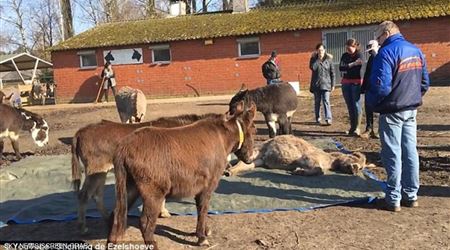 إنتشر فيديو في مواقع التواصل الاجتماعي يظهر وفاة حمار يدعى، بران، في إحدى المزارع بهولندا.