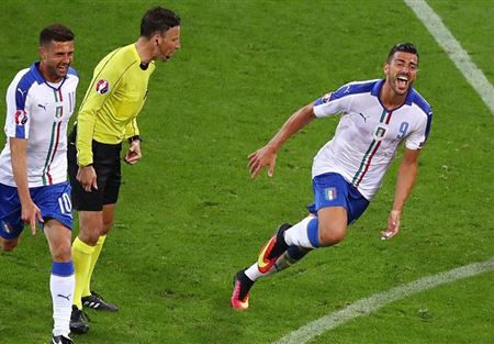 افتتحت إيطاليا مشاركتها في بطولة يورو 2016 بالفوز على بلجيكا 2-0 في ليون في الجولة الأولى من منافسات المجموعة الخامسة.