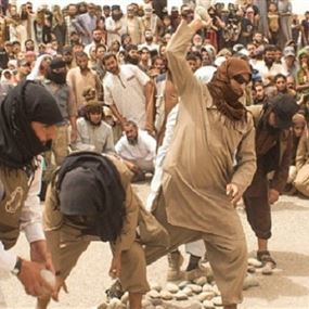 نشر تنظيم داعش صورا تظهر قيام عناصره برجم 4 رجال متهمين بالزنا بالحجارة، حسبما أفادت صحيفة "دايلي ميل".